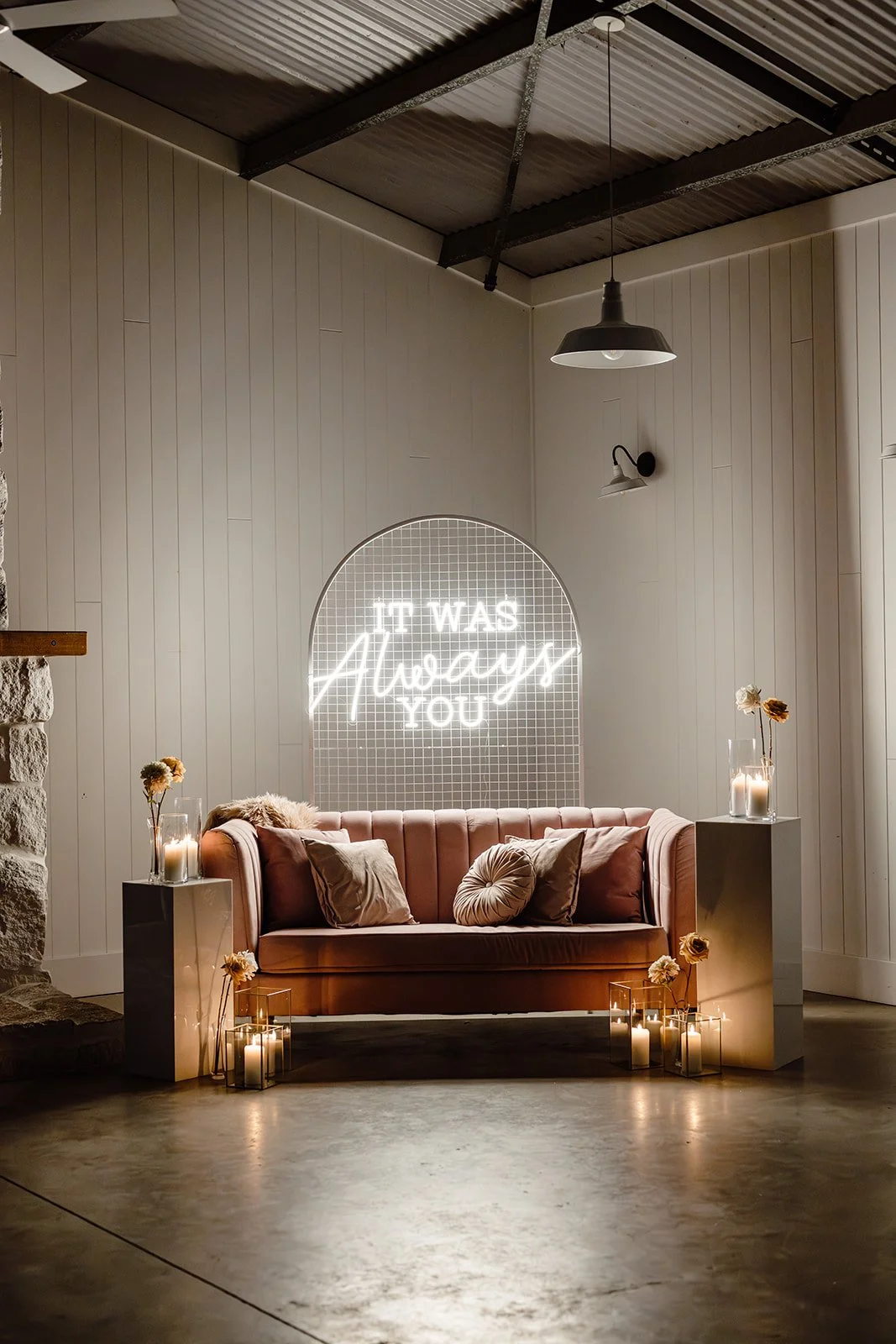 We have a range of mesh backdrops you can secure the neon to on our website HERE, our sister business The Wedding and Event Creators also has various arch/arbour shapes you can tie the neon to. Plus if your venue has a ledge or beams this may be something you can 'rig' off as well. option